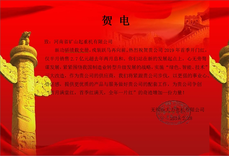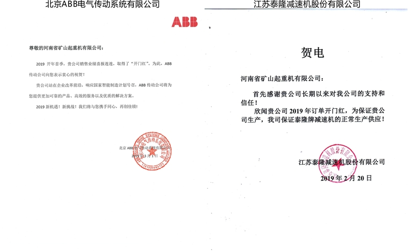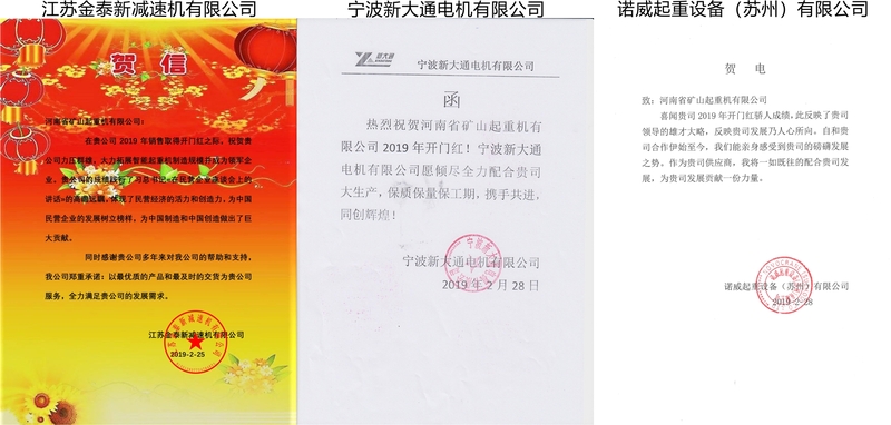河南矿山首季开门红,订单多、生产如火如荼。各大供应商纷纷来函来电,祝贺公司取得了2019年首季开门红,并表示河南矿山所用原材料优先供给,所供产品保质、保量、按时送货,确保河南矿山大生产如期进行。